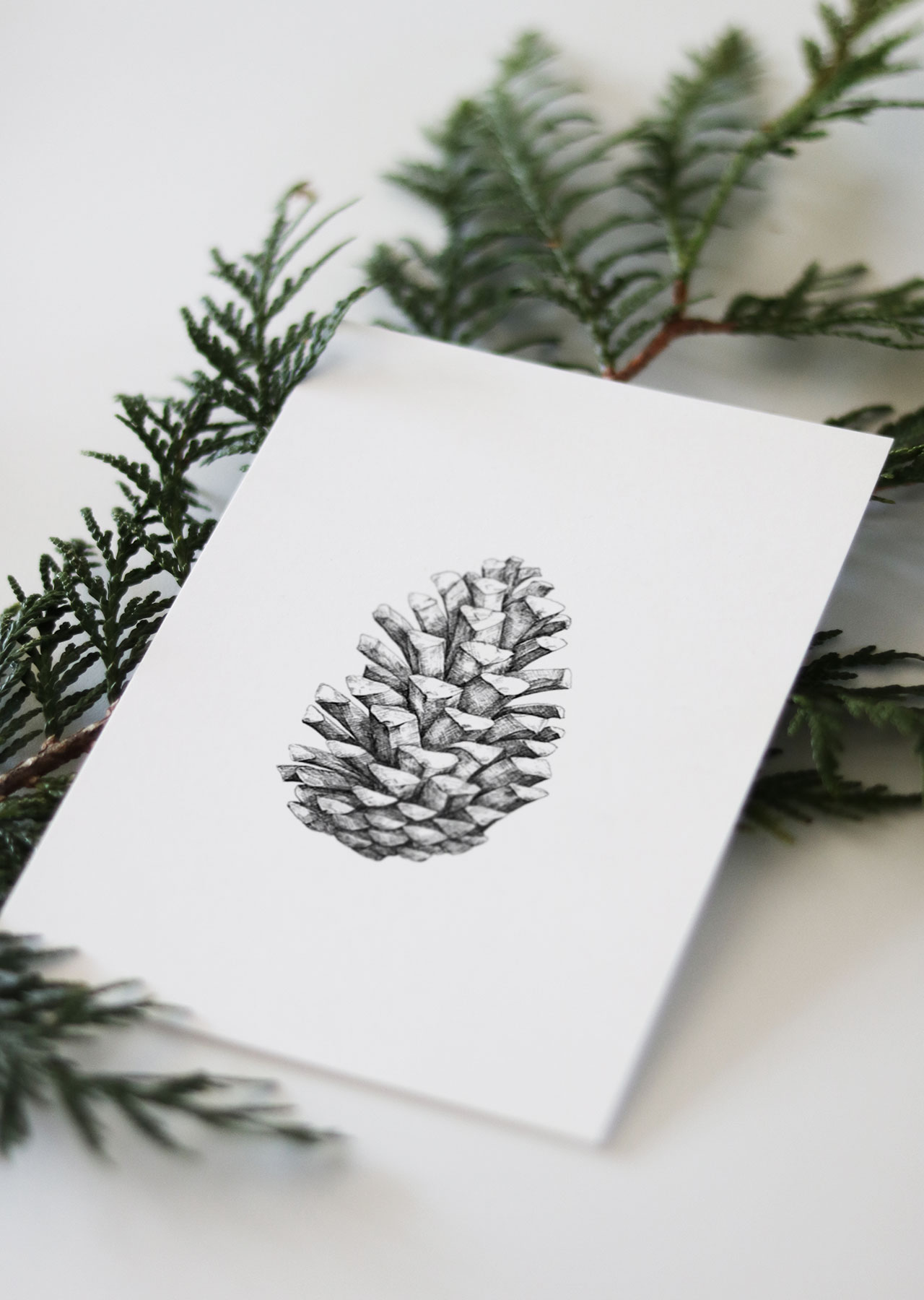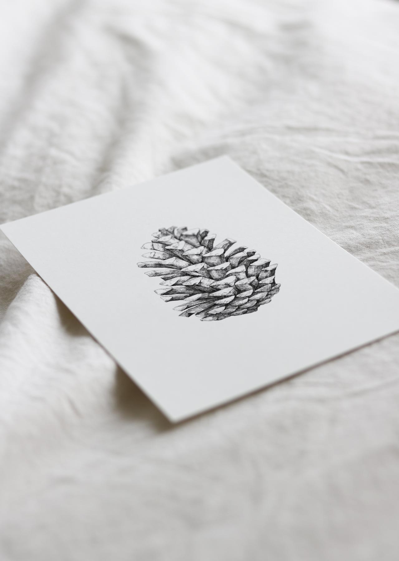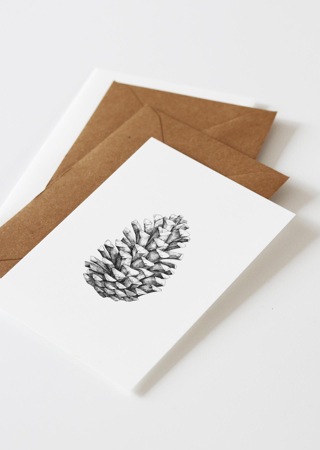 Hand drawn illustration of a pine cone. The pine cone is a symbol of growth. Finish with a matching envelope. Or display the card in a handmade card holder or A6 frame, a gift for someone else or yourself.